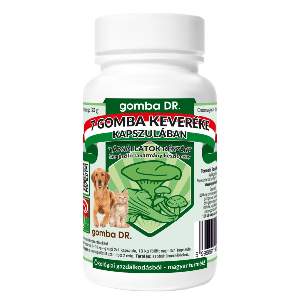 A gomba DR. 7 gomba keverék kapszula társállatok részére termék, kiegészítő takarmány készítmény. A gombák egymás hatásait erősítik és segítik!